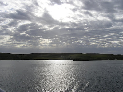 I am staying in the tiny hamlet you can see on the hillside (to the right) on the island of Yell, Shetland. The water is Whaal Firth, the Shetland equivalent of a fjord.Sky Watch Friday